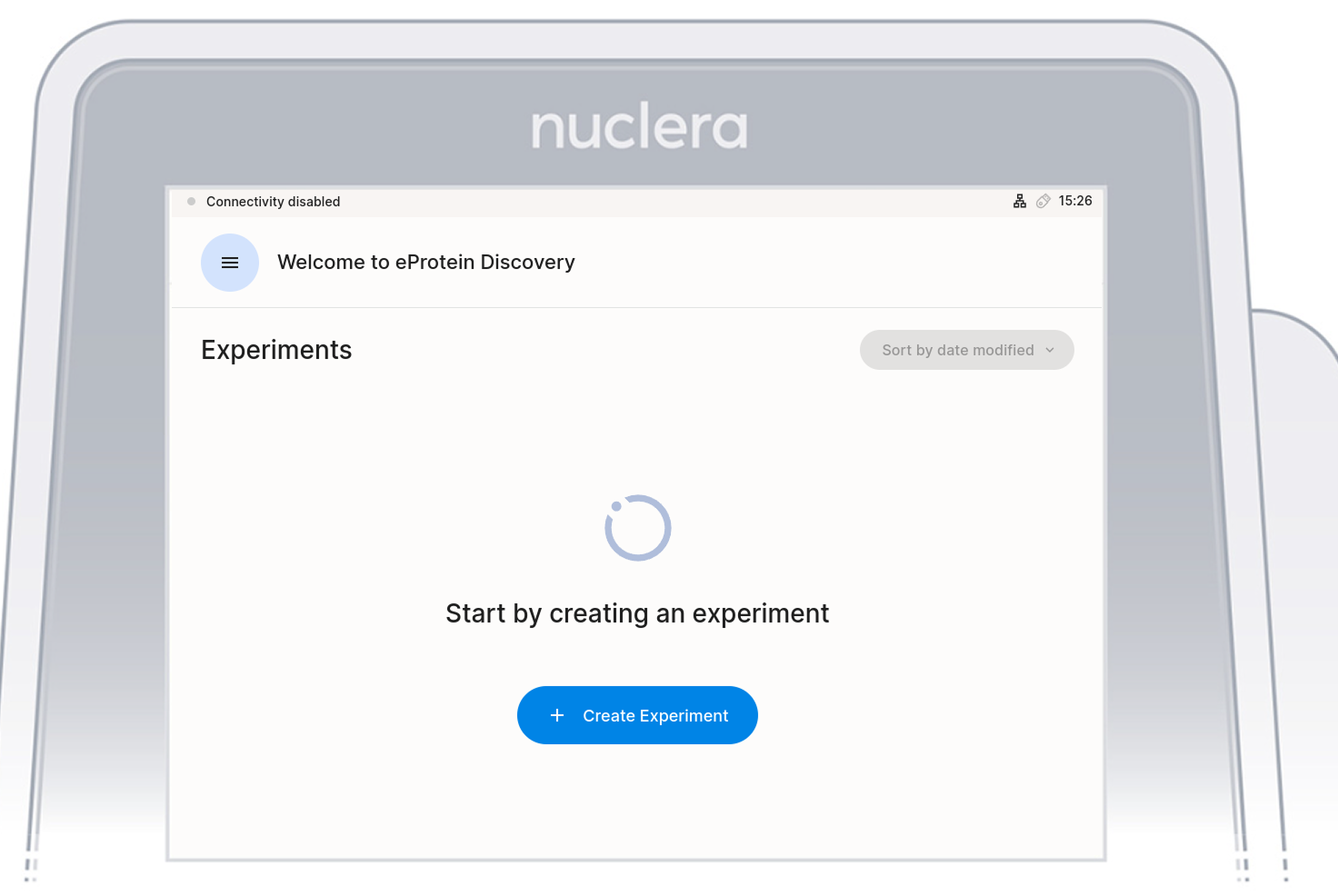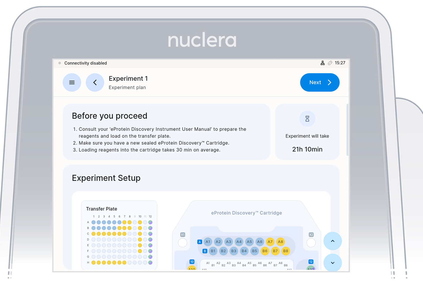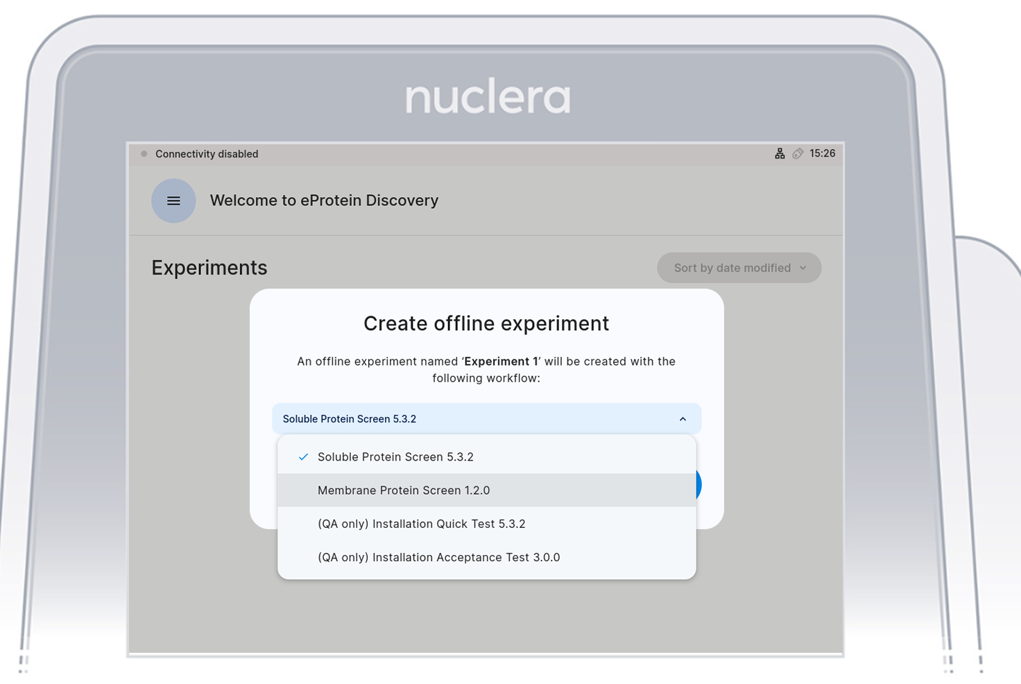 On the instrument software, select an experiment you set up on eProtein Discovery.