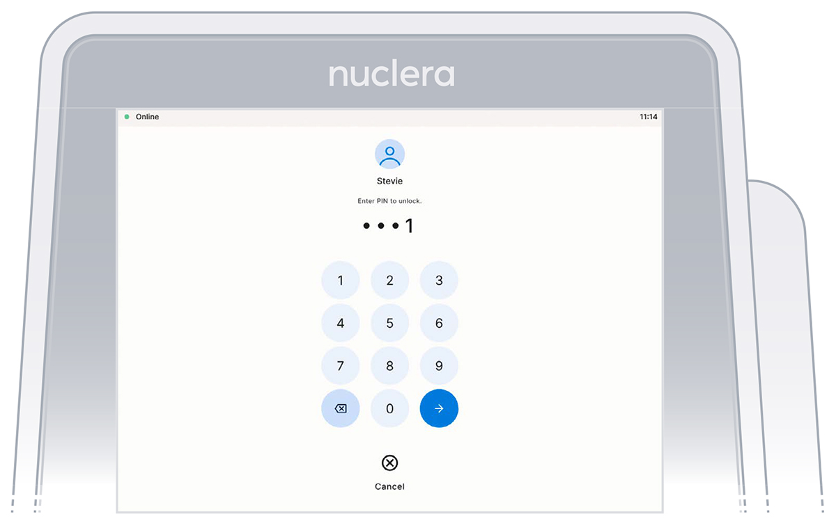 Log into the instrument software by selecting the user and entering PIN.