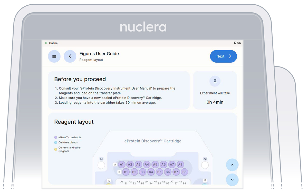 Loading of the cartridge on the eProtein Discovery instrument.