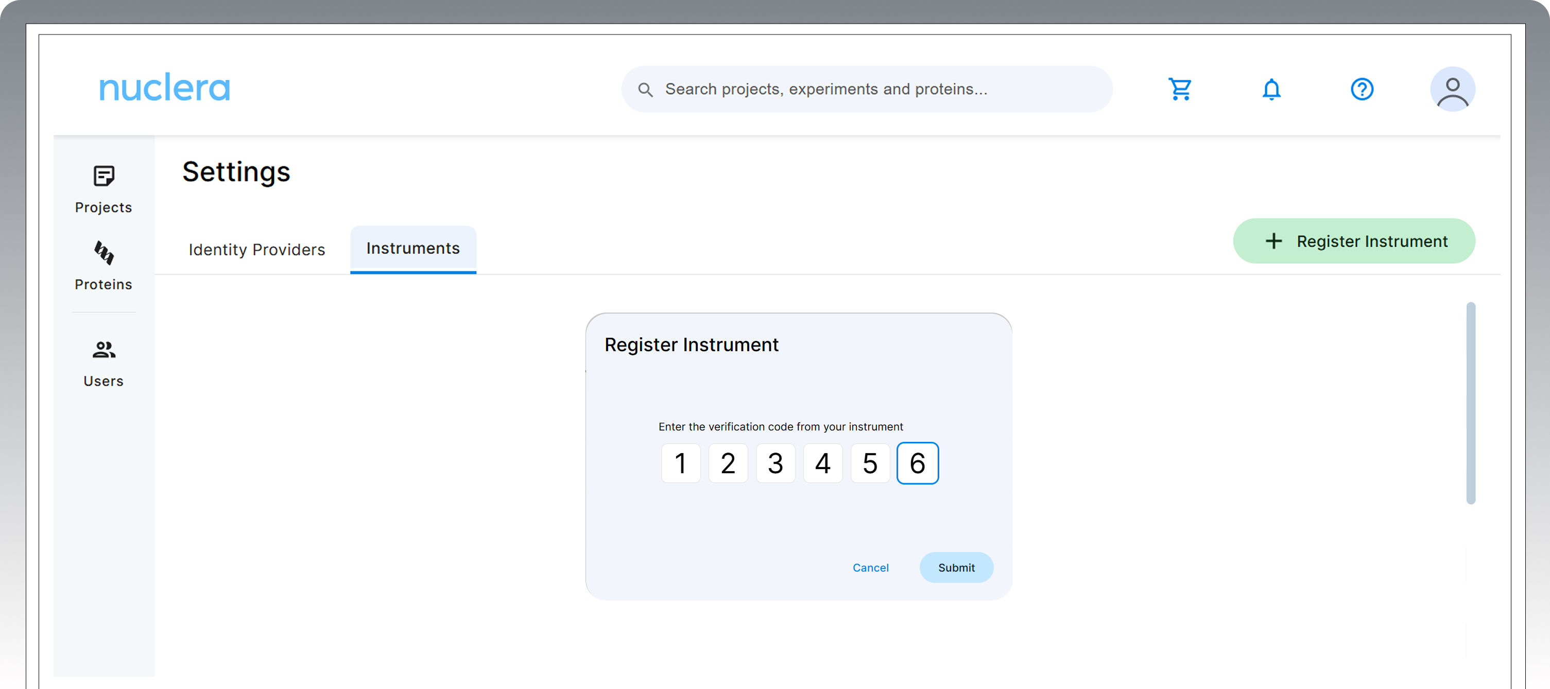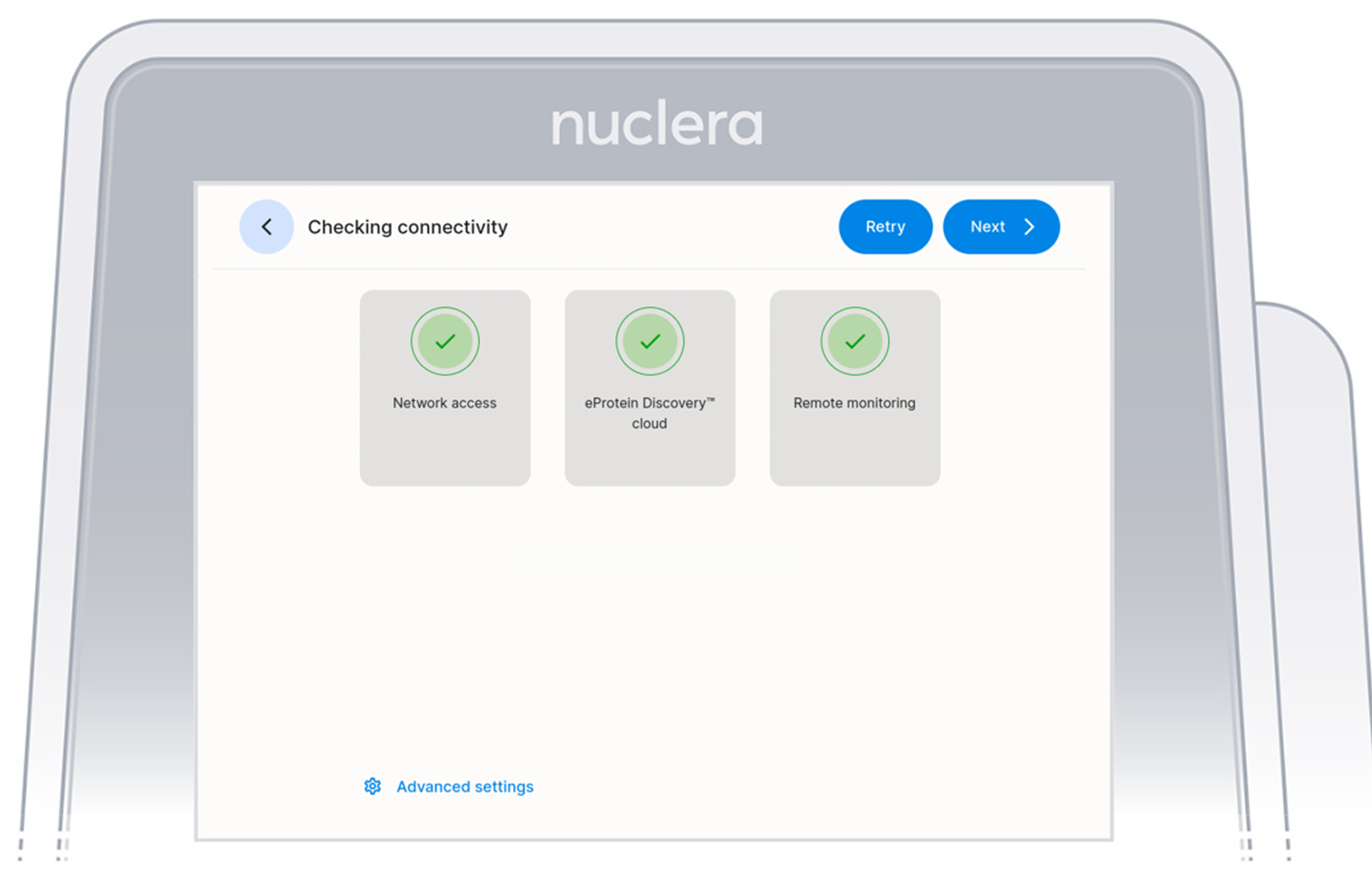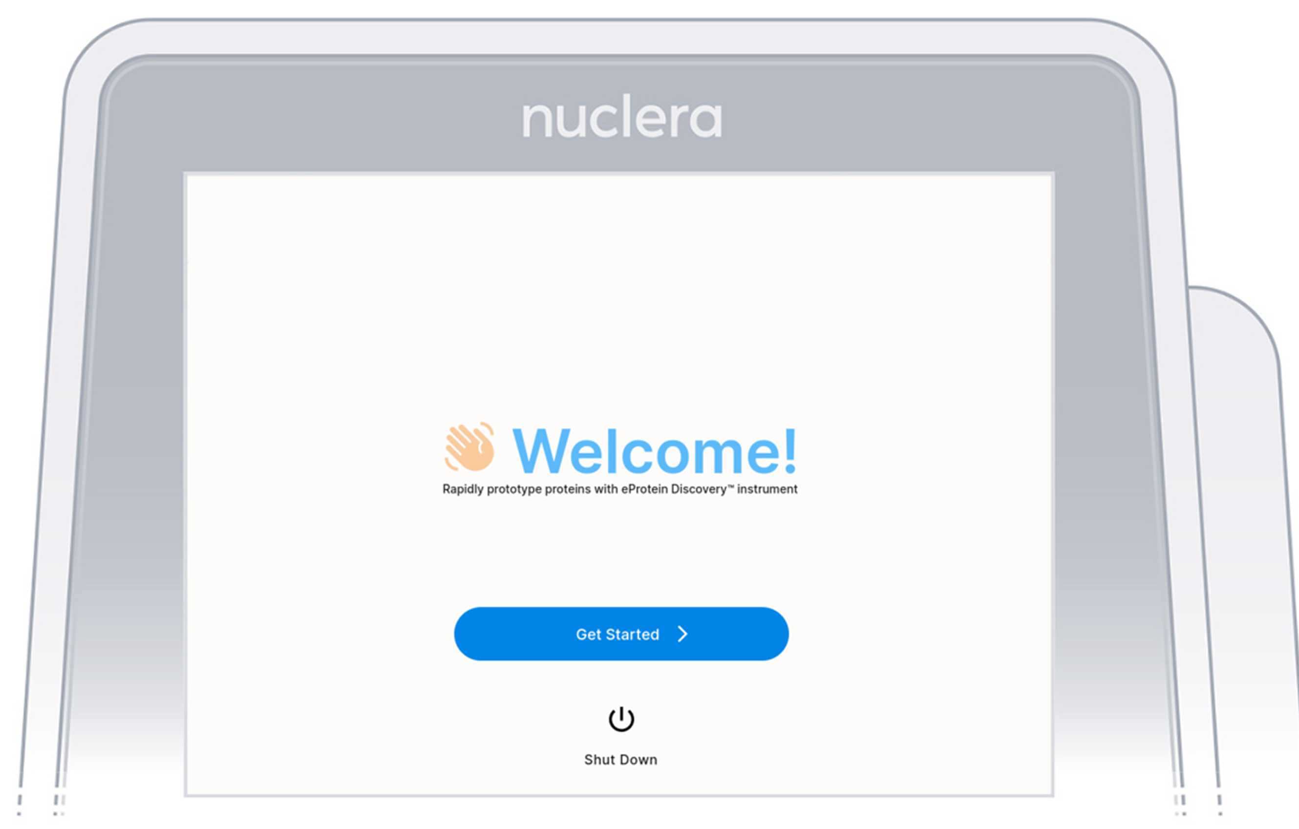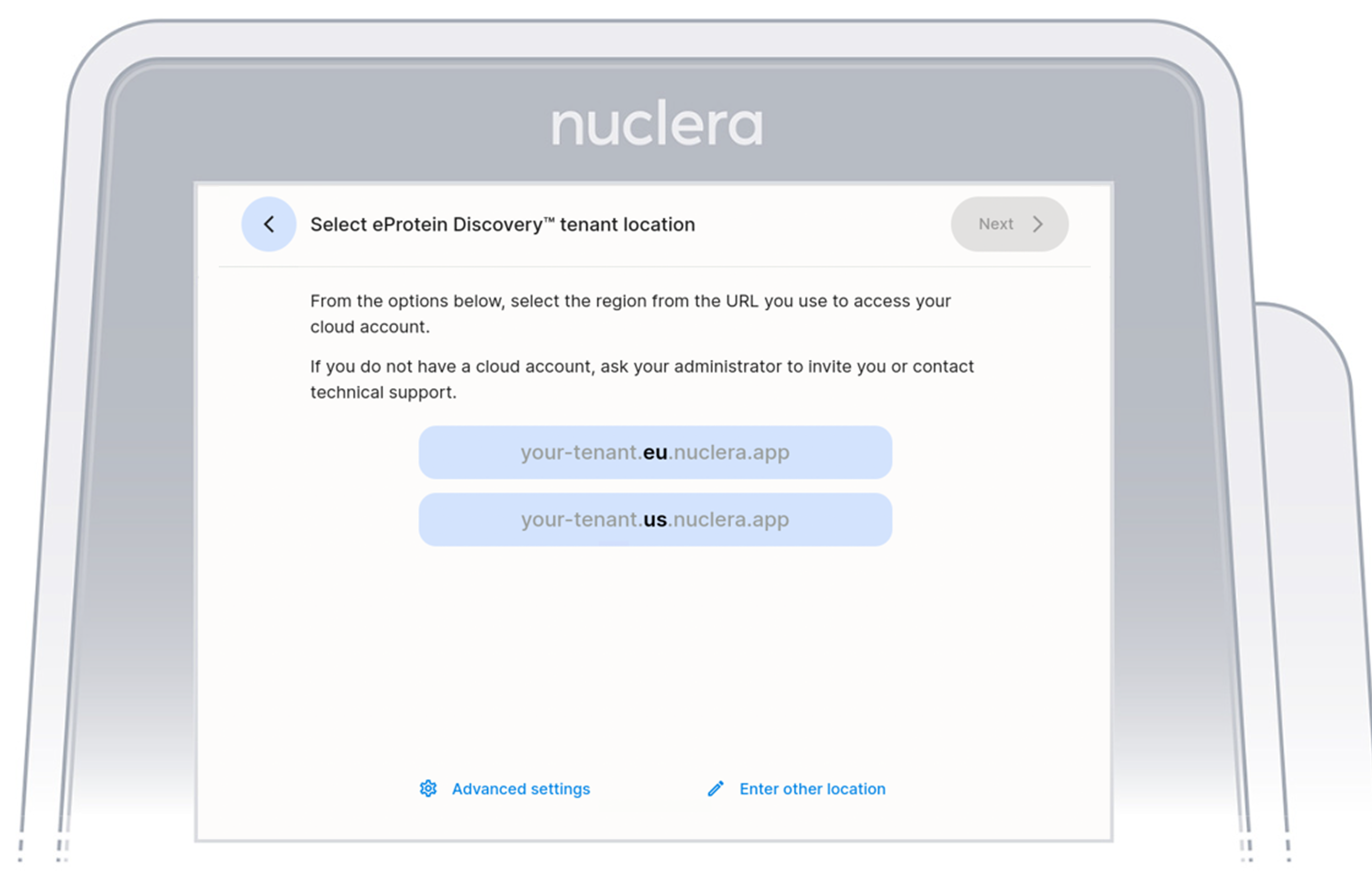 After completing the welcome flow it is necessary to complete the registration of the instrument on the Nuclera Cloud Software using a separate internet connected device.
