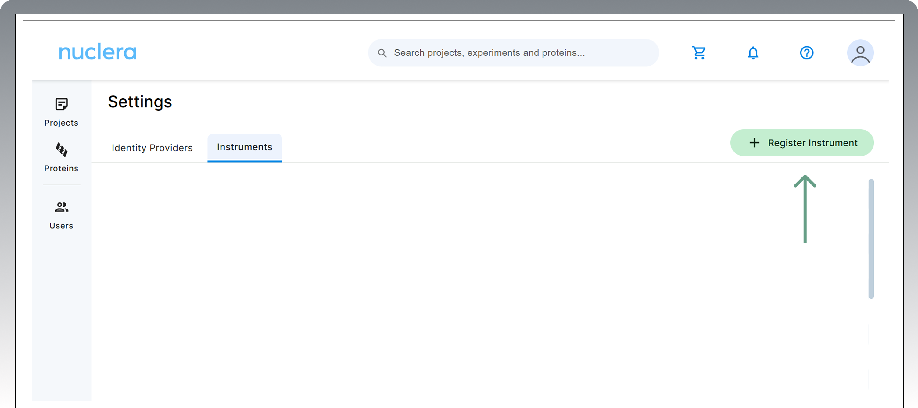 In the Settings window, navigate to the Instruments tab and click “Register Instrument”. This can be done by any user regardless of having admin access.