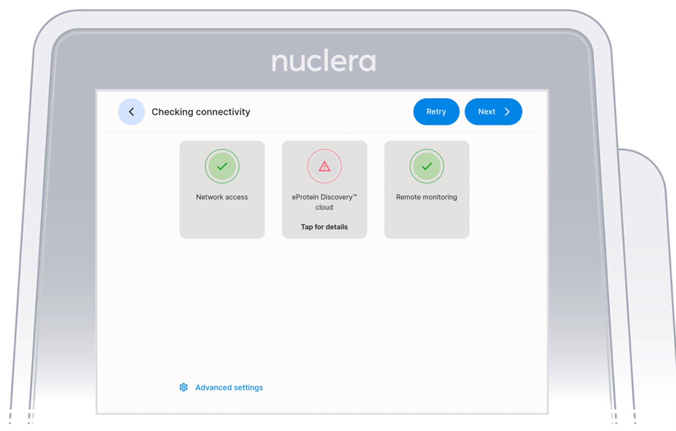 Once the tenant location is selected, the system undergoes connectivity checks. The eProtein Discovery tries to perform 3 checks: